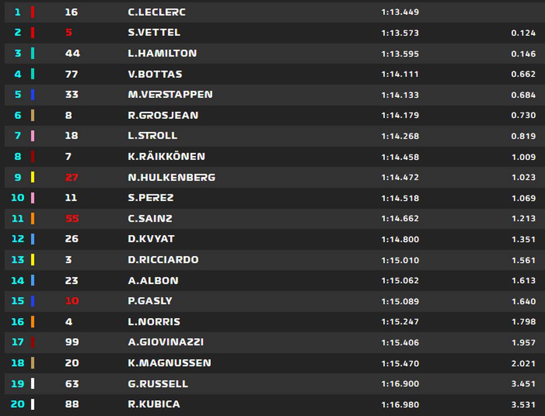 O domínio da Ferrari continuou nesta sexta-feira, 26, em Hockenheim na Alemanha. No primeiro treino livre Vettel fez a volta mais rápida seguido de Charles Leclerc. Já no segundo treino a ordem se inverteu, o piloto de Mônaco foi o mais rápido com tempo de 1m13s449.