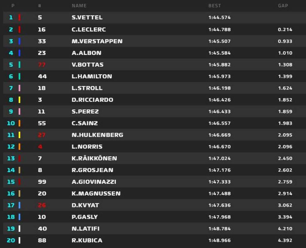 Na Williams, George Russel não treinou. O seu lugar foi ocupado pelo canadense Nicolas Latifi, da equipe Dams da Fórmula 2, que pode ocupar a vaga de Robert Kubica no ano que vem. Latifi terminou em 19°, ficando na frente do seu companheiro de equipe.